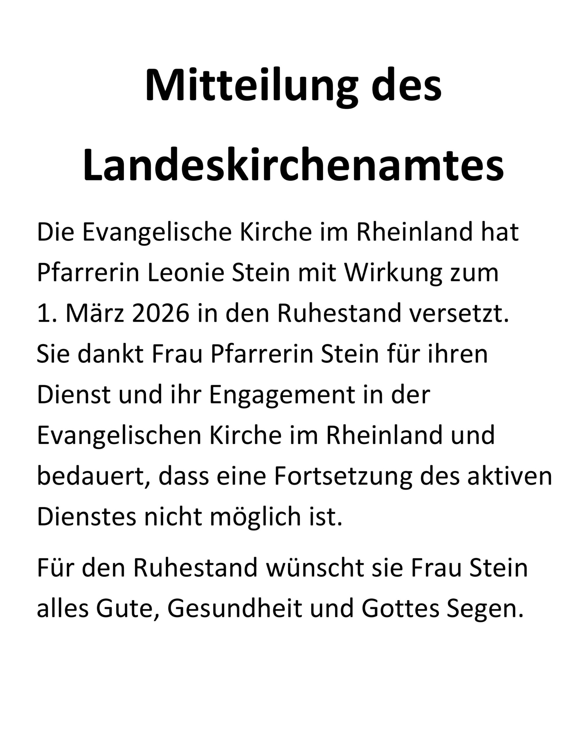 Hier erhalten Sie eine aktuelle Information des Landeskirchenamtes.