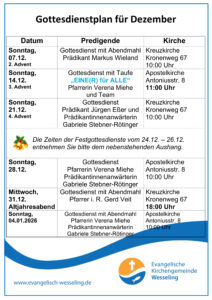Kirche & Gottesdienste Hier finden Sie die aktuelle Übersicht zu den nächsten Gottesdiensten: Klicken Sie das Bild an, um zu Vergrößern.
