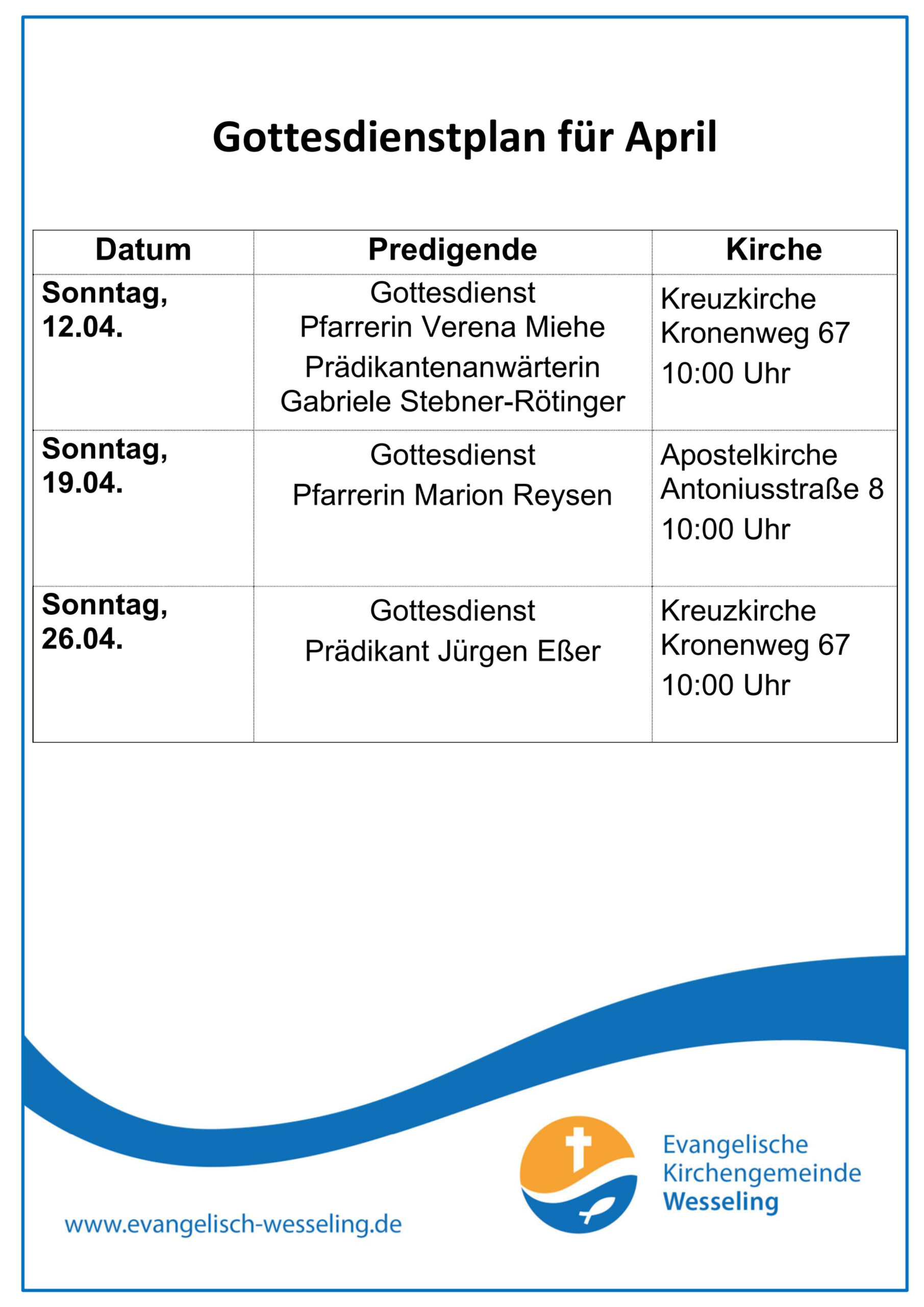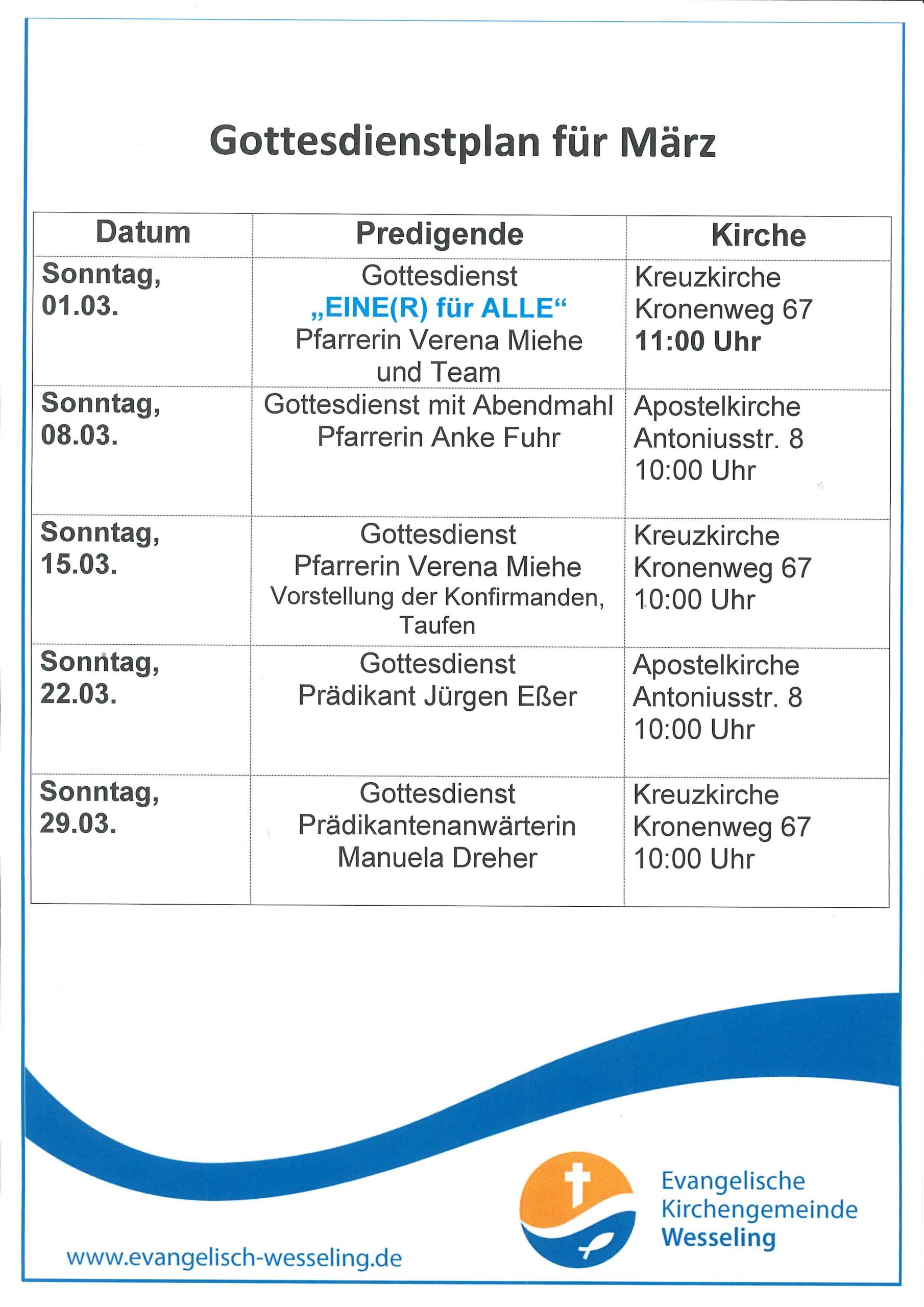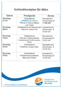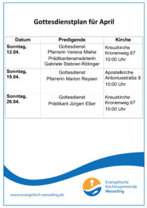 Kirche & Gottesdienste Hier finden Sie die aktuelle Übersicht zu den nächsten Gottesdiensten: Klicken Sie den Gottesdienstplan an, um zu Vergrößern.